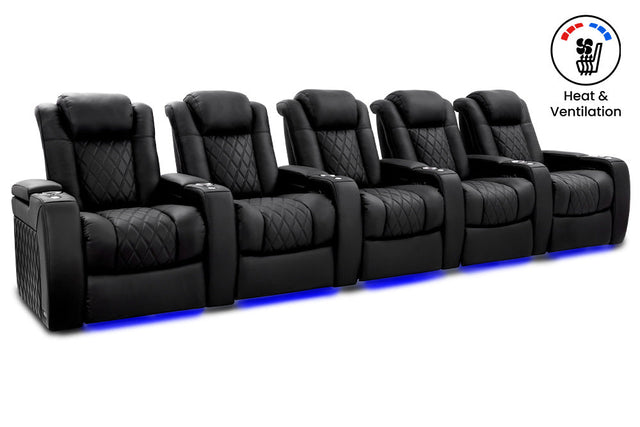 • The black chrome cupholders and ambient base lights are equipped with RGB LED technology in 7 vibrant colors, allowing you to effortlessly find your drink and set the perfect cinematic mood—even in complete darkness.