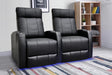 Incredibly sleek, slim, and comfortable, the Syracuse is designed to give you plenty of space in your home cinema without sacrificing comfort. The Syracuse reclining home theater chairs comes with LED cup-holders, ambient base lighting, premium top grain 9000 leather on all seating surfaces, and motorized recliner mechanisms. The Syracuse will immerse you into your viewing experience like no other leather-upholstered theater chair has before.
