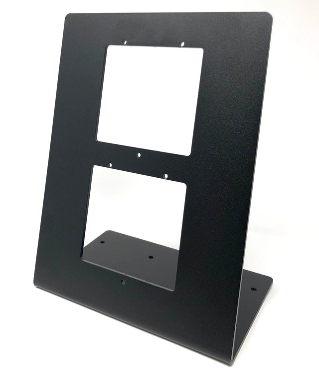 Desktop stand for the RealSimGear G5.  Made from 3mm steel, powder coated matt black with rubber non-slip feet and mounting screws.  The stand provides a stable, elevated mounting position for dual G5 units.
