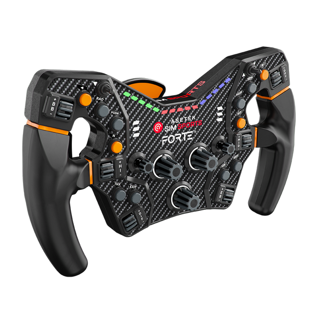 Our relentless focus on Performance and Precision without breaking the bank, gives the Asetek SimSports® Forte® Formula Steering Wheel a competitive edge, allowing you to get down to the tarmac and be one with your virtual racecar. Providing you with the quality and durability you have come to expect from Asetek.